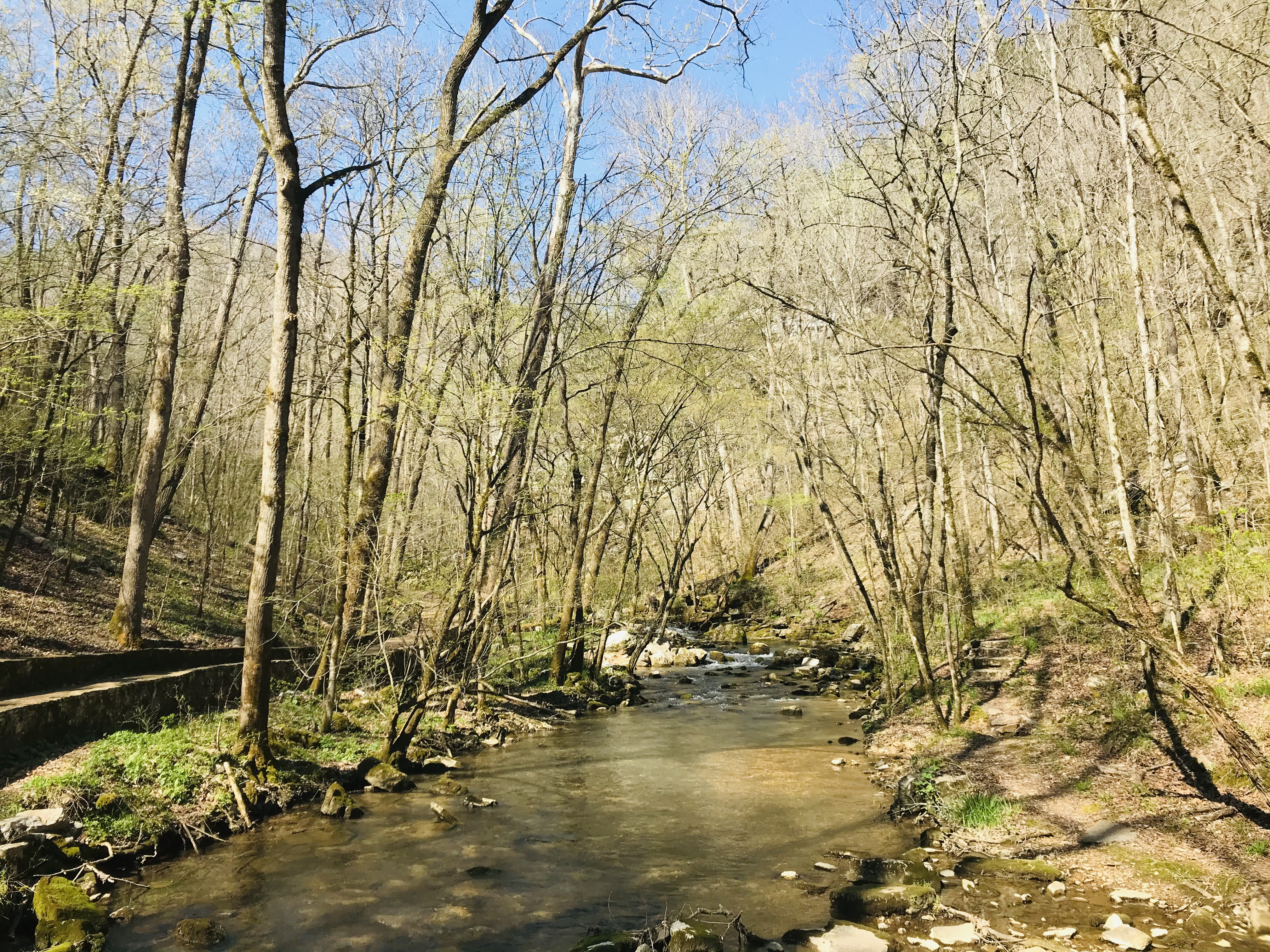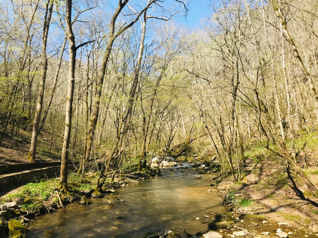 After leaving the friendly, well-heeled, art patrons of Bentonville, we drove east through the glorious Ozarks. The Ozarks aren’t mountains by California standards, more like large hills, and spread out over 47,000 square miles, mostly in Arkansas and Oklahoma. Spring is a great time in the Ozarks. The red bud trees are blooming in the understory, and the white oaks and sycamores are starting to get tiny leaves. On our hikes, we saw a lot of wildflowers and evidence that lots more are on the way in the coming weeks.