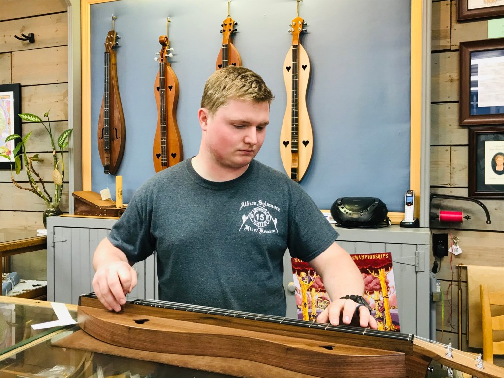 The region is also known for its handmade dulcimers. In the past 60 years, the Dulcimer Shop in Mountain View has made almost 80,000 instruments, which are shipped all over the world. Dulcimers have been featured on not-Ozark music by many pop artists, including Joni Mitchell, the Rolling Stones and Harry Styles. We got a demonstration of playing techniques on one of the dulcimers at the Dulcimer Shop.