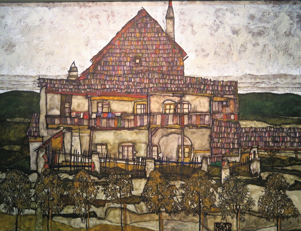 Scheile is most famous for his portraits but he also painted a lot of houses. In the room filled with his house paintings, an Australian man commented to me on their beauty and earthiness. I replied that they reminded me of Hundertwasser and did he know whether there are Hundertwassers in Vienna museums. He replied, “I’m sorry, I don’t know German.”