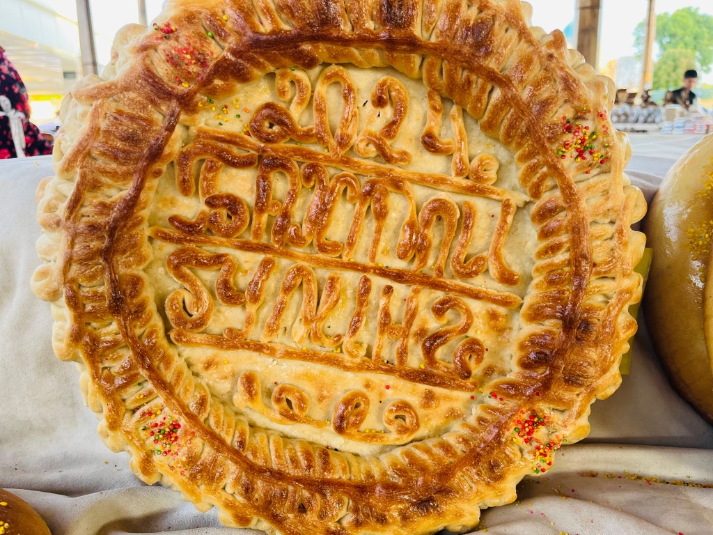 Many breads here are stuffed with meat but this one is decorated with Arabic calligraphy.