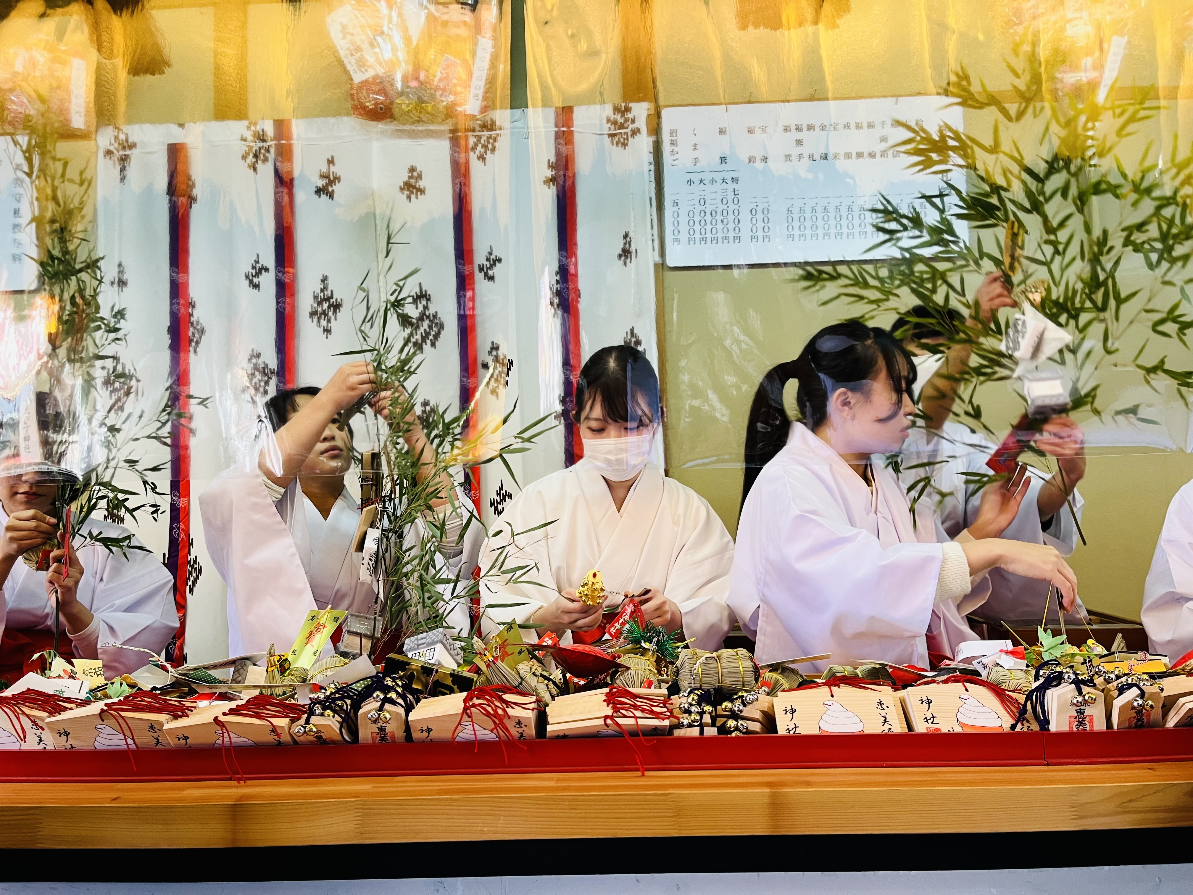 I loved watching these young women at the Ebisu festival arranging ornaments on bamboo boughs. The temples in Japan always have goodies you can buy.