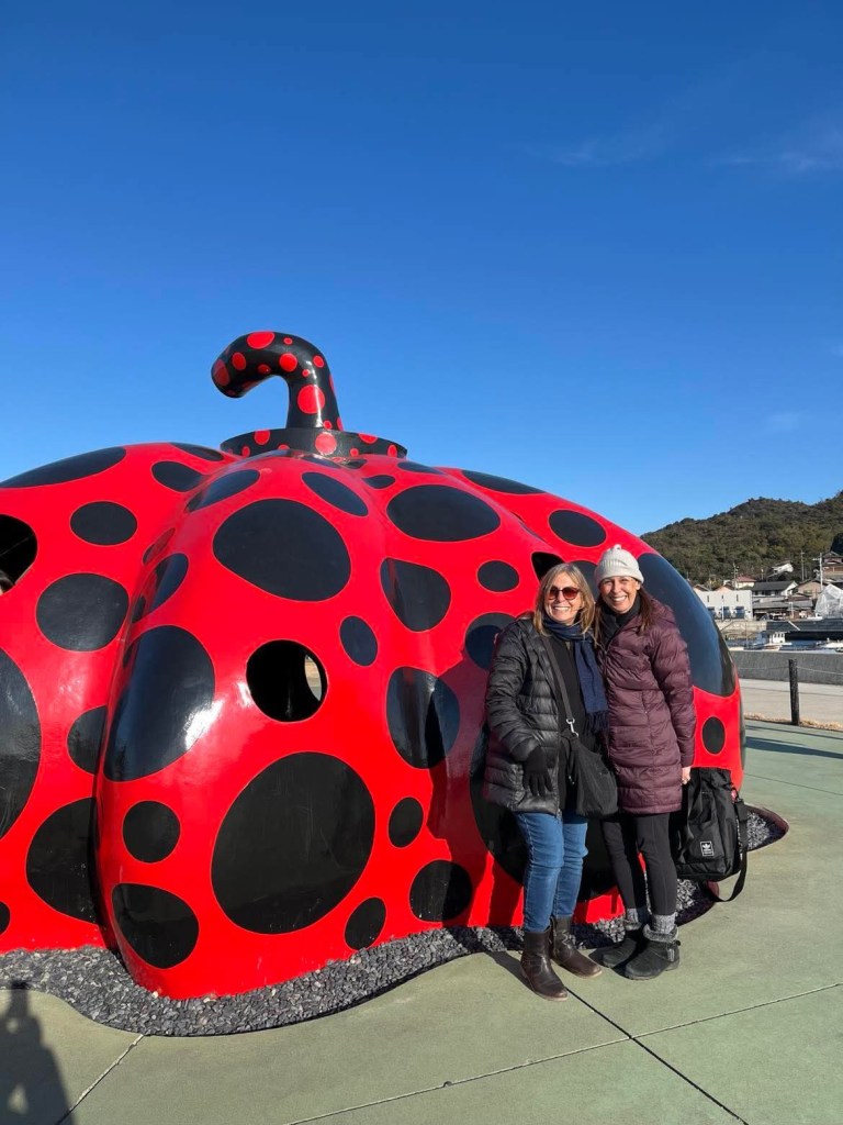 After Kyoto, we visited the art islands of the Seto Inland Sea. This is one of the famous sculptures by Yayoi Kusama, which invites physical interaction. We rode bikes to the museums and installations on two of the islands. If you go to Japan, this is definitely a highlight!