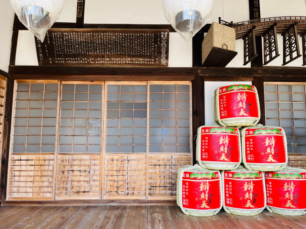 A lot (all?) of Japanese shrines artfully stack these artfully-designed lugs of sake. It’s not clear who is drinking it.