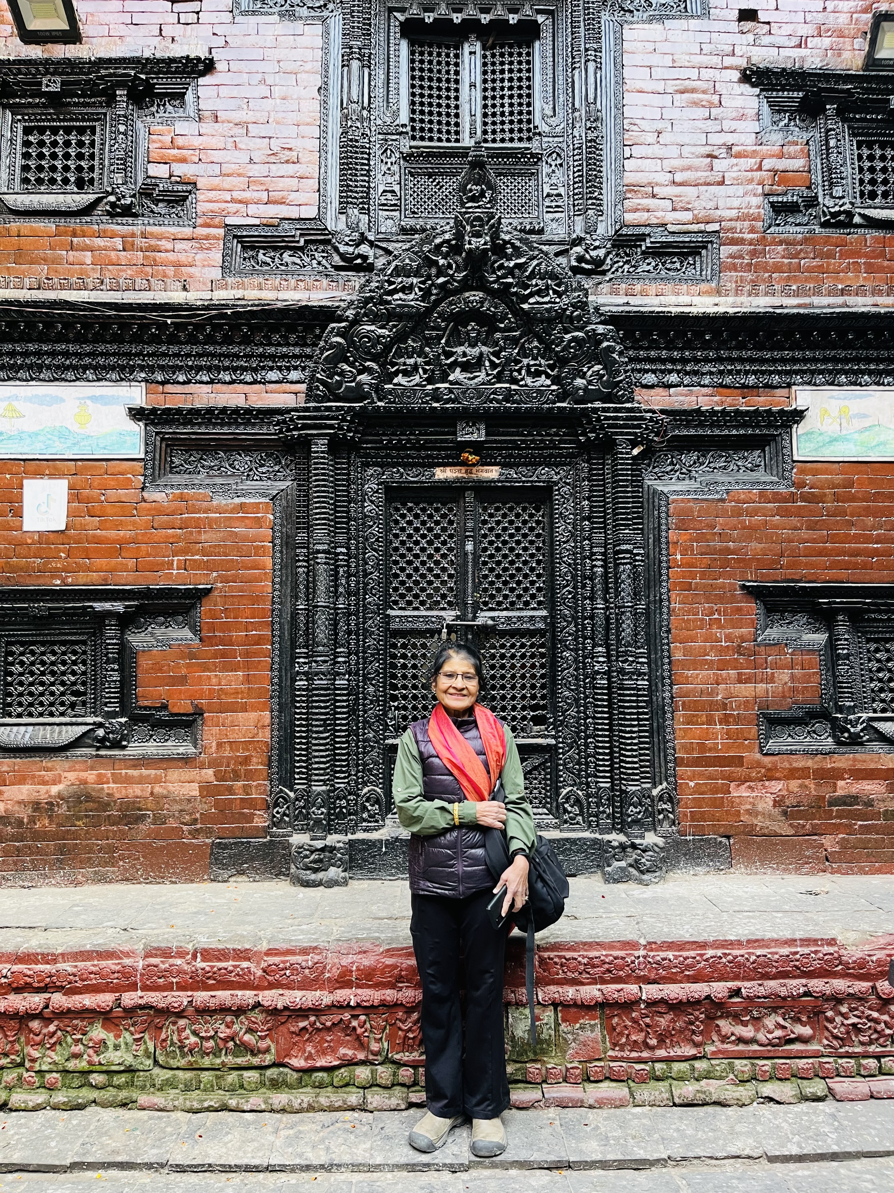 Aparna timed our visit to Durbar Square so we were able to see the Living Goddess, Kumari. The Living Goddess is an incarnation of the goddess of Taleju and the embodiment of the divine feminine. She is a real child who is chosen according to a long list of attributes — and loses her status as soon as she begins menstruating or even if she bleeds from an injury. Although the Living Goddess is a person who is pre-ordained, identifying her is a sort of competition.. It’s probably not the kind of competition that most (non-goddess) girls would hope to win. The Living Goddess cannot leave her palace and has numerous responsibilities that most children wouldn’t want. You can read more about the history of the Living Goddess here. https://heavenhimalaya.com/goddess-kumari/