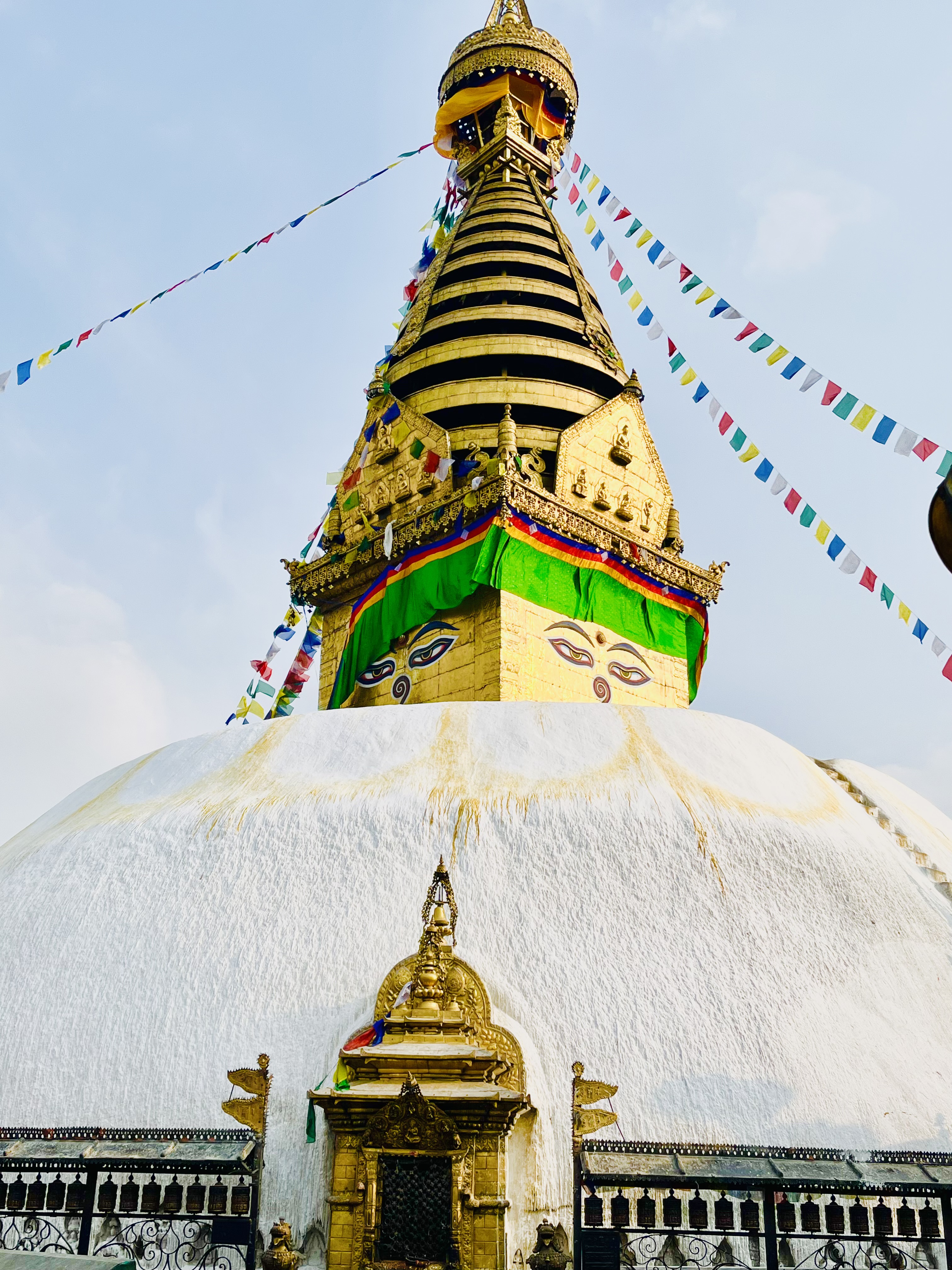 The Tibetan Buddhist stupa at Swoyambhu, also called the Monkey Temple because of the many monkeys who live at the site.