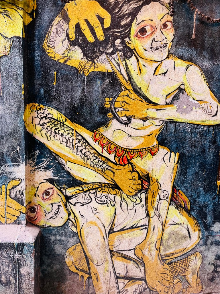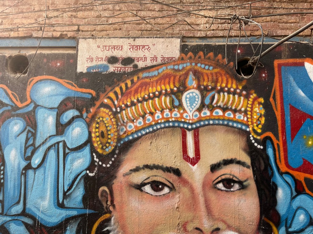 Walking from temple to temple, I found a few gorgeous murals hidden away in a little alley. The old city in Bhaktapur is a UNESCO World Heritage Site, and murals aren’t permitted, so these were like little secrets.