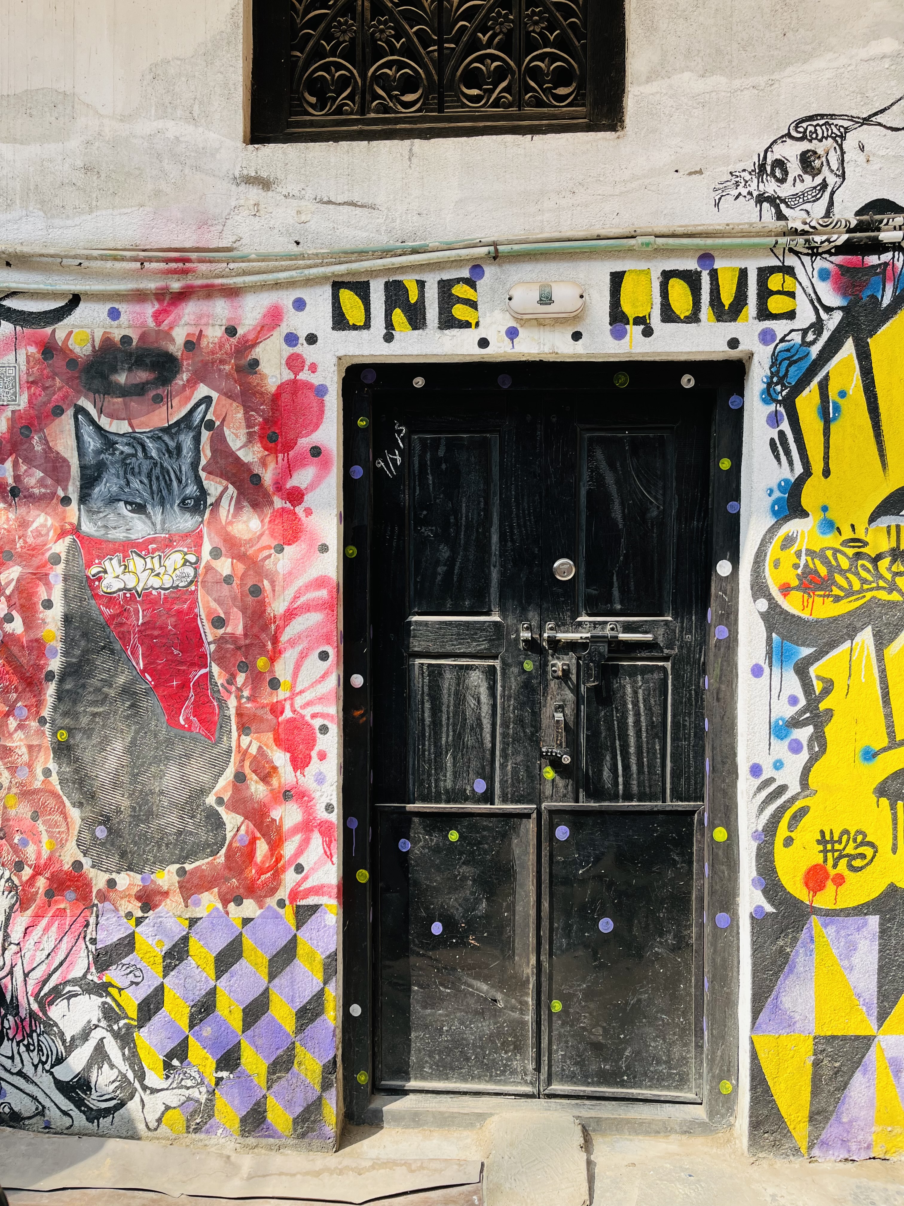 Walking from temple to temple, I found a few gorgeous murals hidden away in a little alley. The old city in Bhaktapur is a UNESCO World Heritage Site, and murals aren’t permitted, so these were like little secrets.