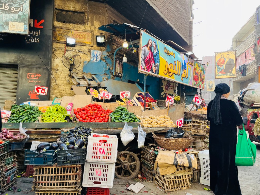 All through Garbage City, banners and icons depict Jesus and Mary, almost like advertisements. The Christians here dress like Muslim Egyptians — with djellabas (robes), headscarves, and hats. (Most Muslim women who wear robes and headscarves do so out of convention, not according to the dictates of oppressive male counterparts, as many of our politicians want us to believe. As one Saudi woman told me, “we wear chador the way you wear business suits or blue jeans.”)