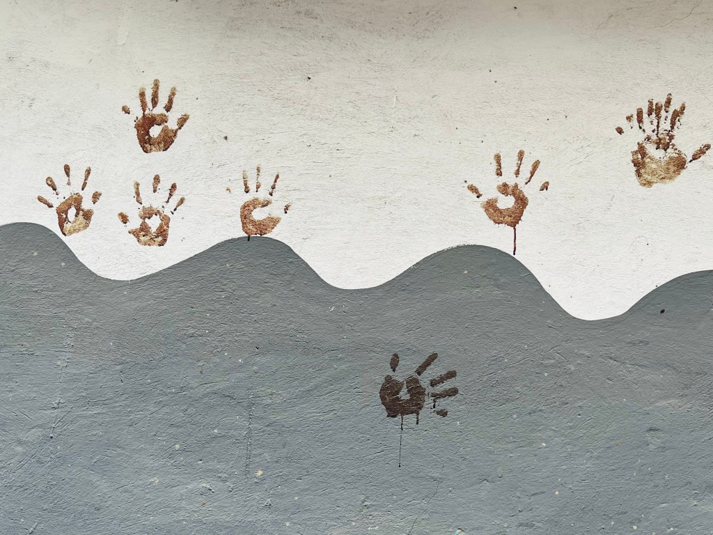 On our way out of Garbage City, I saw handprints on a newly printed wall. The handprints are in cow blood and meant to show gratitude for some kind of success. These handprints probably celebrate the opening of a new shop.