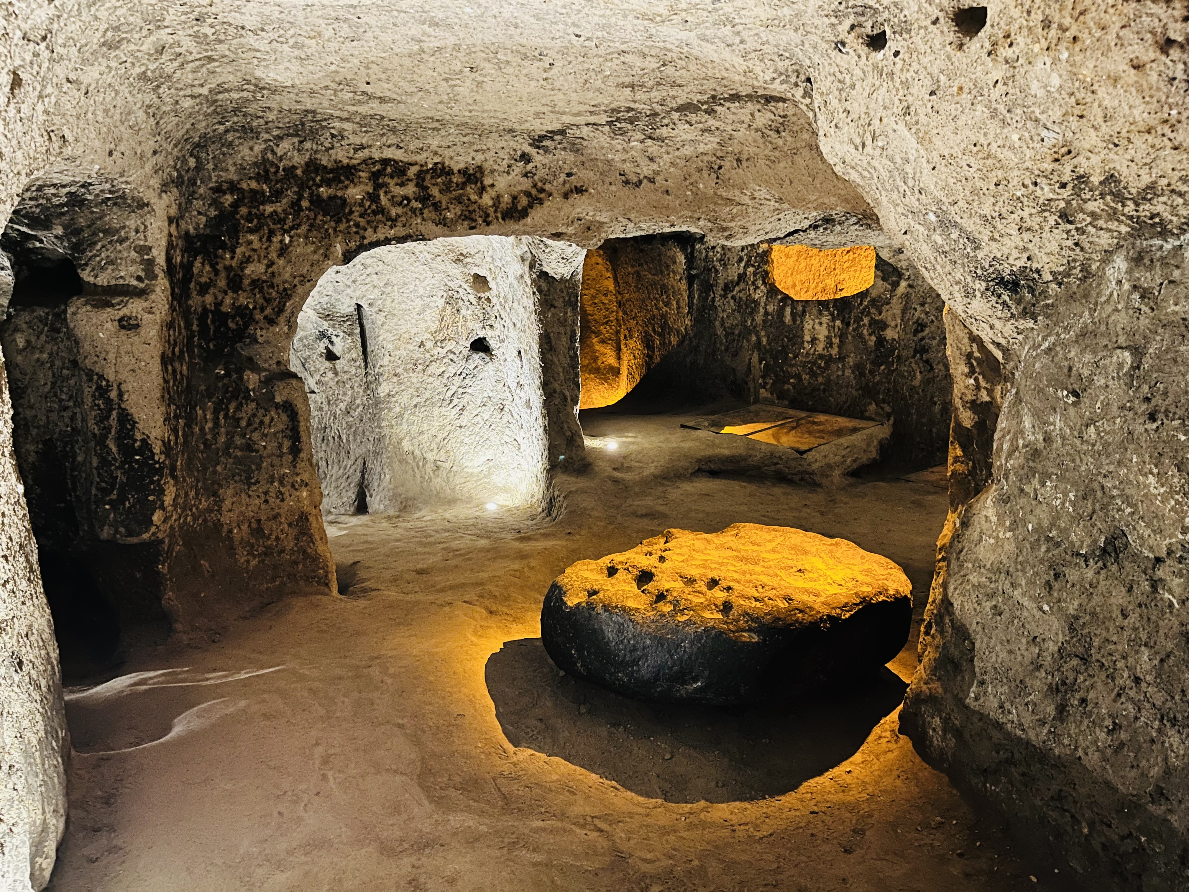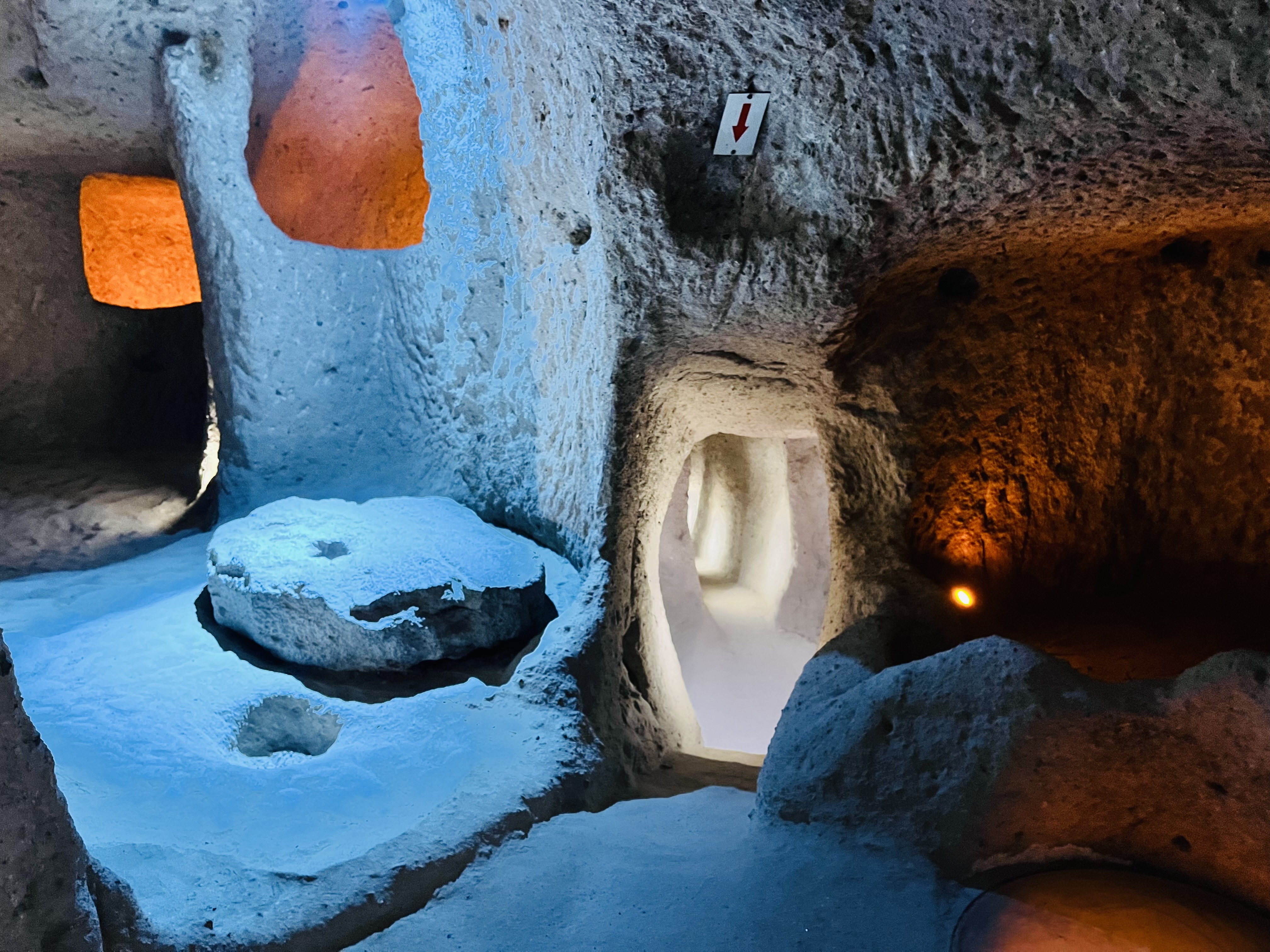The region also has dozens of underground caves with elaborate networks of living areas, storage spaces, stables and communication systems. The caves were inhabited for centuries mainly by Greeks. The Greeks were expelled during hostilities with the Turks after World War I, and the caves were abandoned. Today, some of them are open to the public. The sites don’t provide much information about their history, but they are beautifully lit and seem full of spirits.