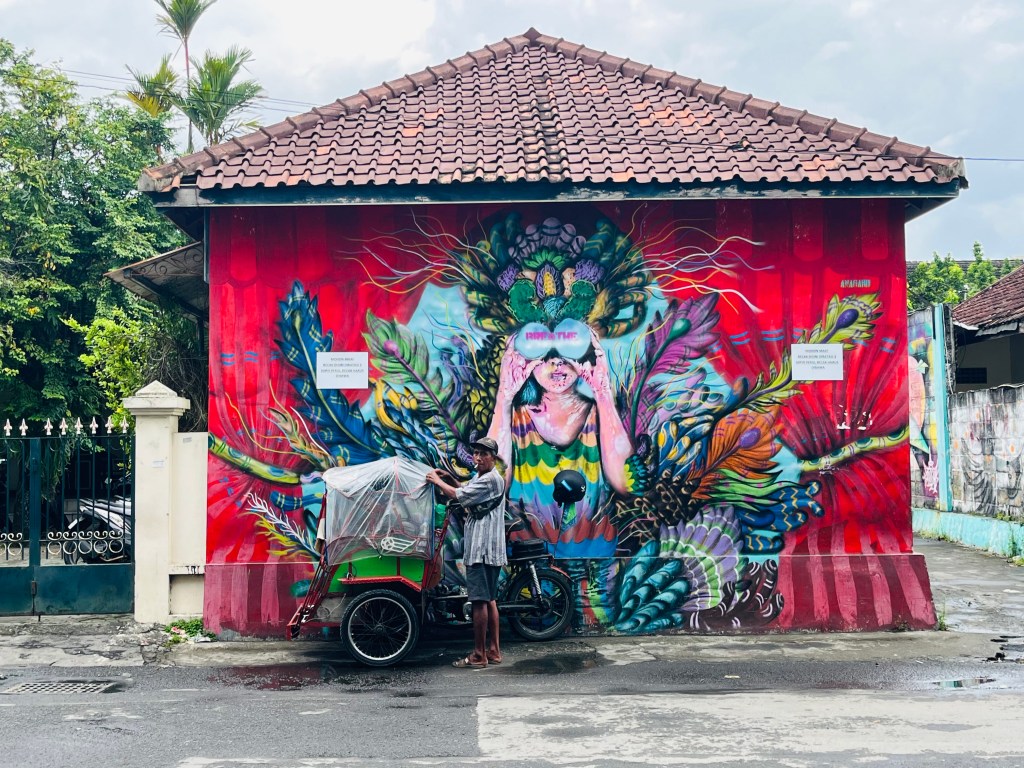 Yogyakarta feels loved. It’s on the island of Java, about 400 miles east of Jakarta and full of spirited art, great food, music, and Javanese traditions. People are friendly and there is a strong sense of community. The roads and alleys are gritty, but full of lively murals. Walking through them, you hear birds singing, chickens squawking, and the call to prayer. And motor cycles.